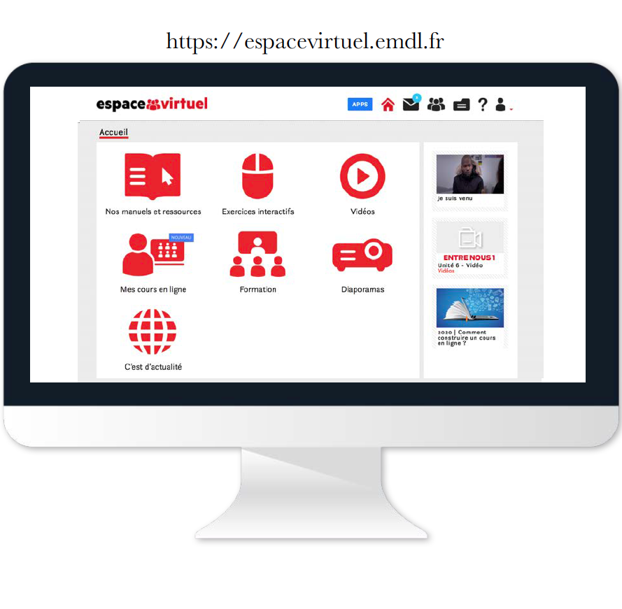 L'espace virtuel est une plateforme créée par les Editions Maison des Langues pour l'apprentissage du Français Langue Étrangère mais aussi et surtout pour les enseignants de FLE Freelance. Elle propose tous les manuels de la bibliothèque des Editions Maison des langues, des activités autocorrectives, des vidéos, des articles actuels didactisés pour les cours de conversation et des vidéos de formation pour améliorer vos pratiques de classe.